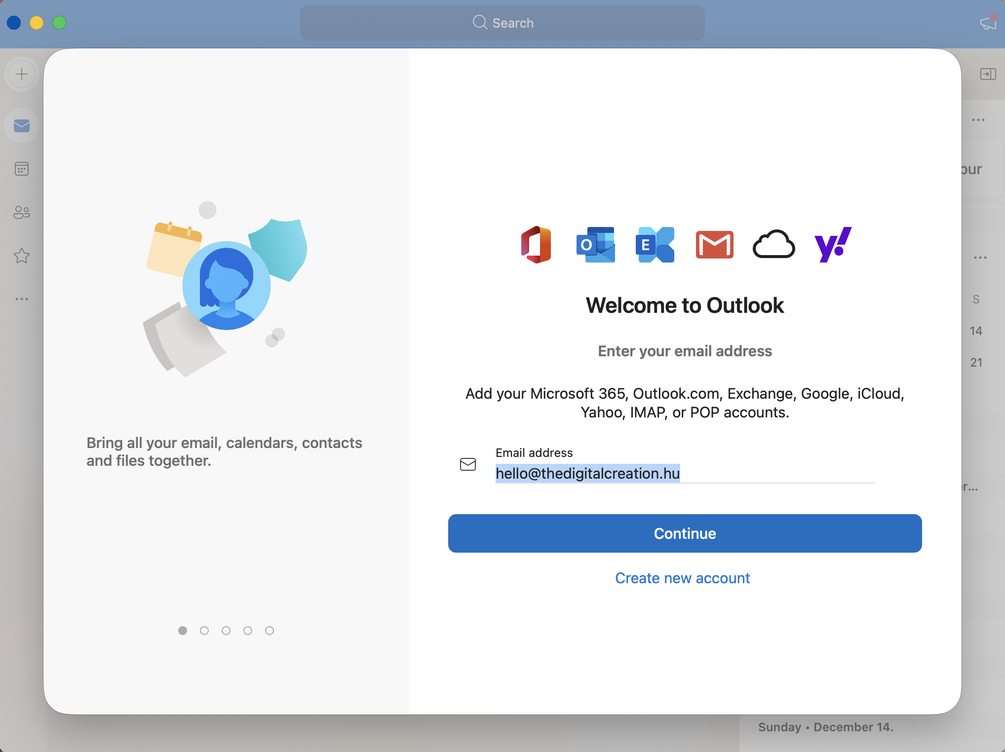 Indítsd el az Outlookot, majd az üdvözlőképernyőn add meg az email címedet: