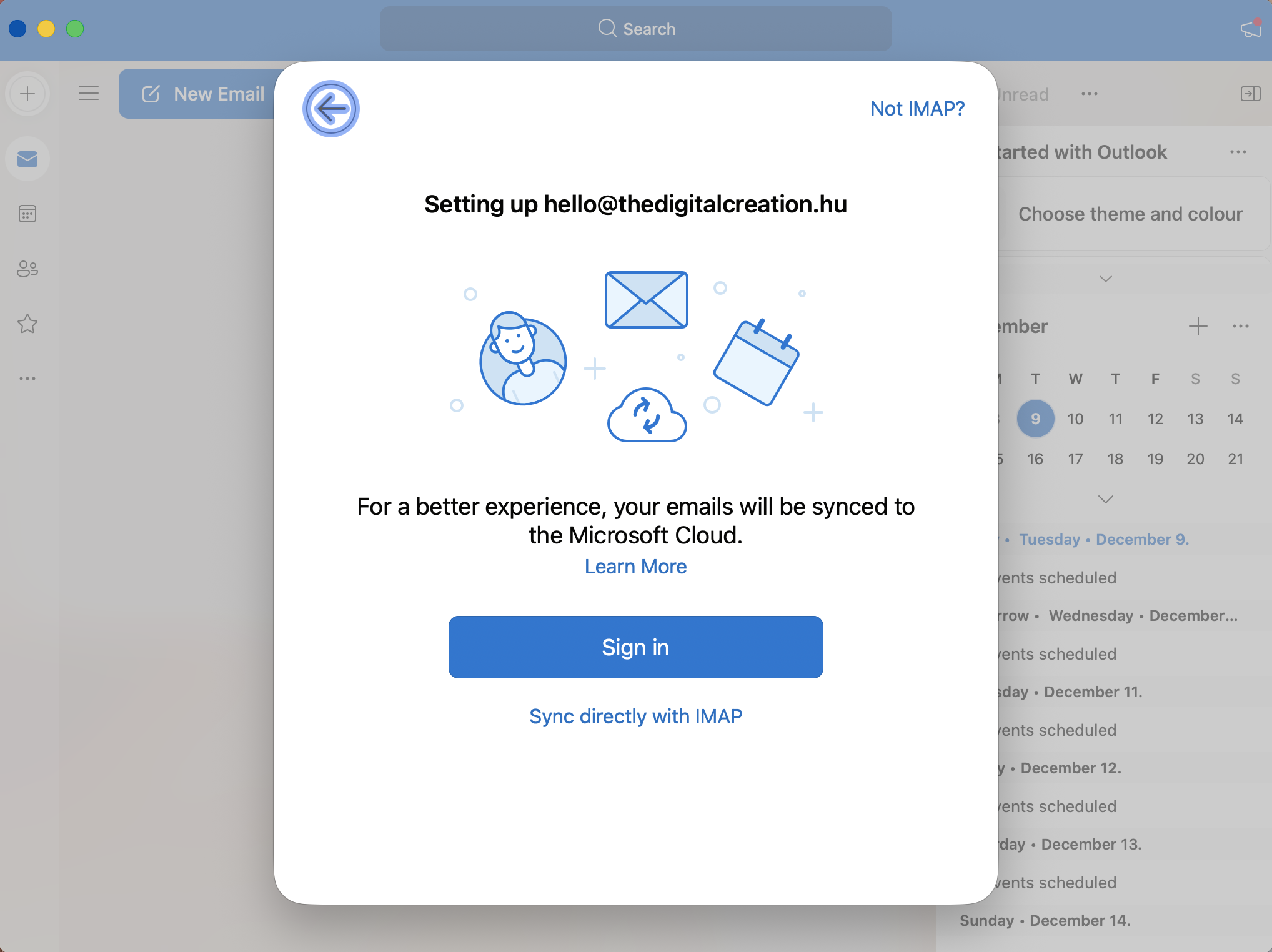 3. Az Outlook megpróbálja felismerni a szerver beállításokatElőfordul, hogy Outlook felismeri a szolgáltatót (Nethely), és felajánlja a Microsoft Cloud alapú szinkronizálást.