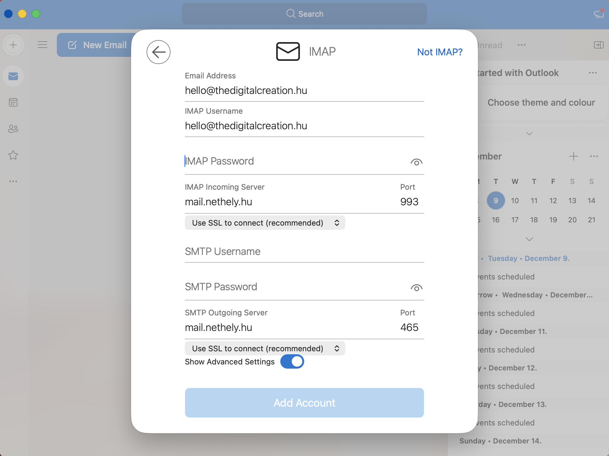 - IMAP Username: az email címed (pl. hello@thedigitalcreation.hu)